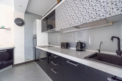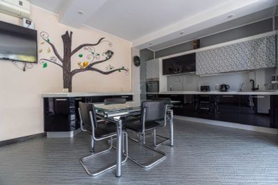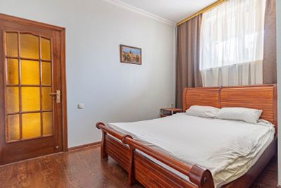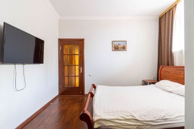 Есть ванна. Удобная кровать. Если с детьми - есть отдельная комната. В ванной комнате полный комплект полотенец и халаты. Хорошее расположение в центре севастополя, пожалуй самое главное достоинство.